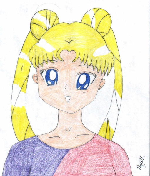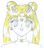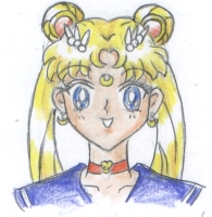 Step 16. Outline in black ink and sign it! You're all done! How does it look? Please, if you can, send Sakura a copy of your drawing (check out the Contact page for more info)! A tutorial for the body of Sailor Moon will be coming soon! HAPPY DRAWING! |