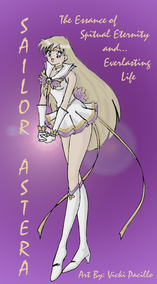 Vixen made these great images of Sailor Astera in her various forms. Look! A school outfit! Don't see those too often! :)